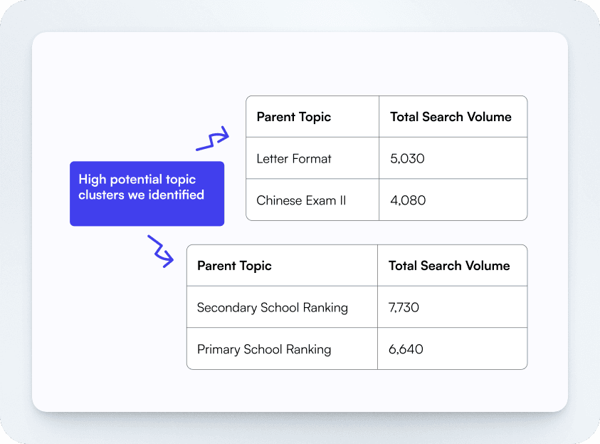 - Emphasize top-of-the-funnel keywords: Given our primary goal of maximizing student awareness of the platform, we targeted high-volume, top-of-funnel keywords to attract more potential users at the beginning of their search journey.
